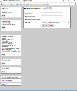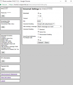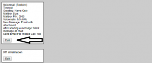 Click on “edit” under Voicemail to change your Voicemail settings.